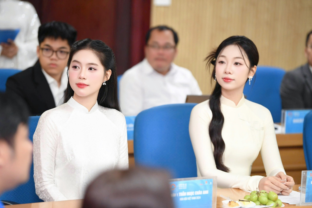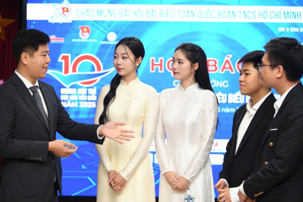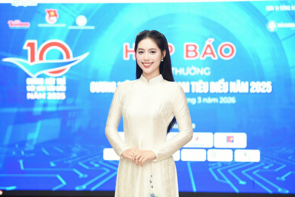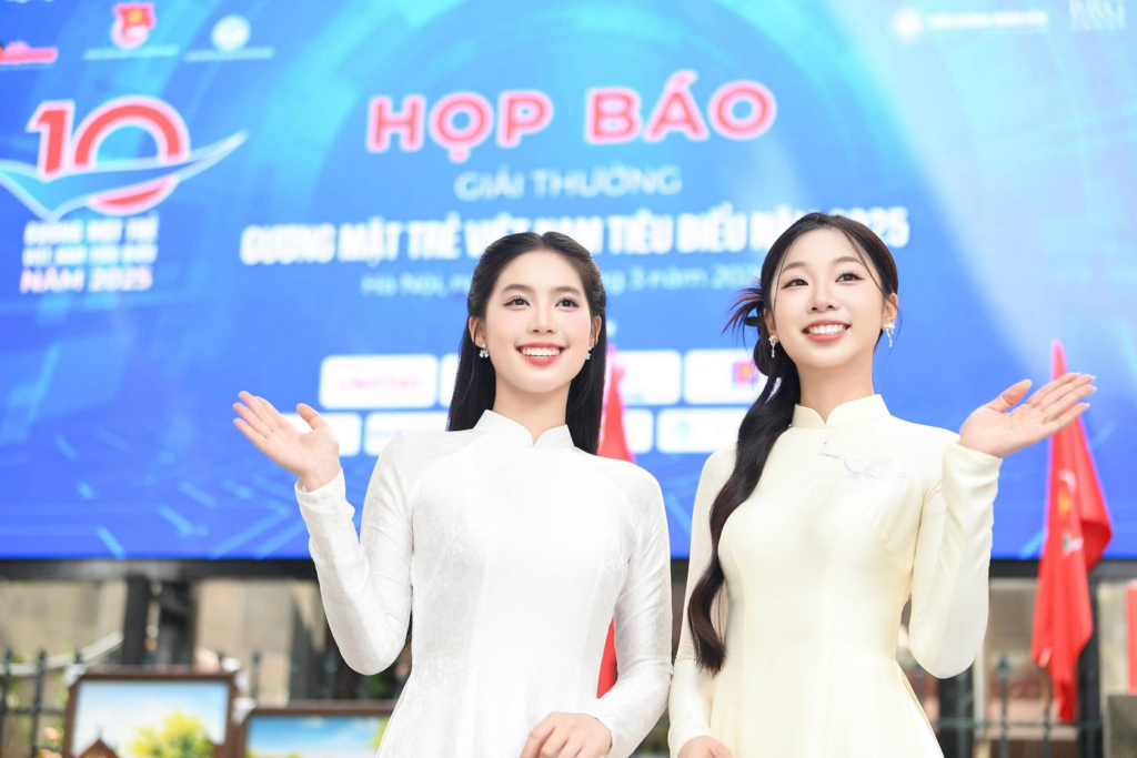 Ngày 2/3, tại Hà Nội, T.Ư Đoàn TNCS Hồ Chí Minh, Quỹ Hỗ trợ Tài năng trẻ Việt Nam tổ chức họp báo công bố danh sách 19 đề cử xuất sắc lọt vào vòng bình chọn trực tuyến của Giải thưởng Gương mặt trẻ Việt Nam tiêu biểu năm 2025. Á hậu Châu Anh, Đại sứ Du lịch và Môi trường Hoa hậu Việt Nam 2024 Phạm Thùy Dương xuất hiện duyên dáng tại họp báo trong trang phục áo dài thanh lịch.
