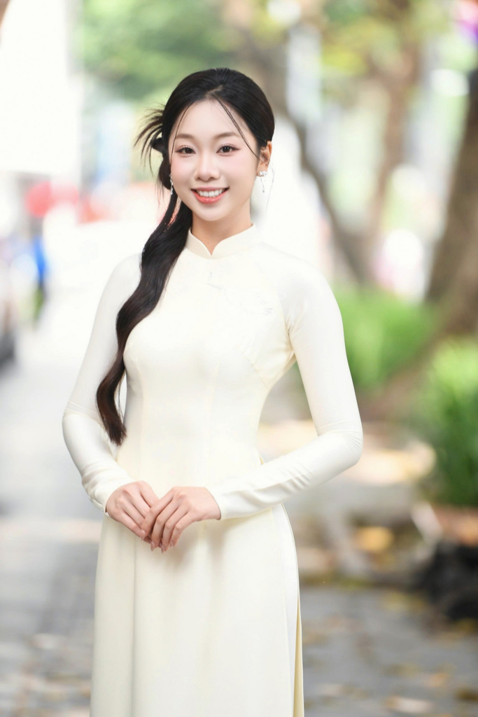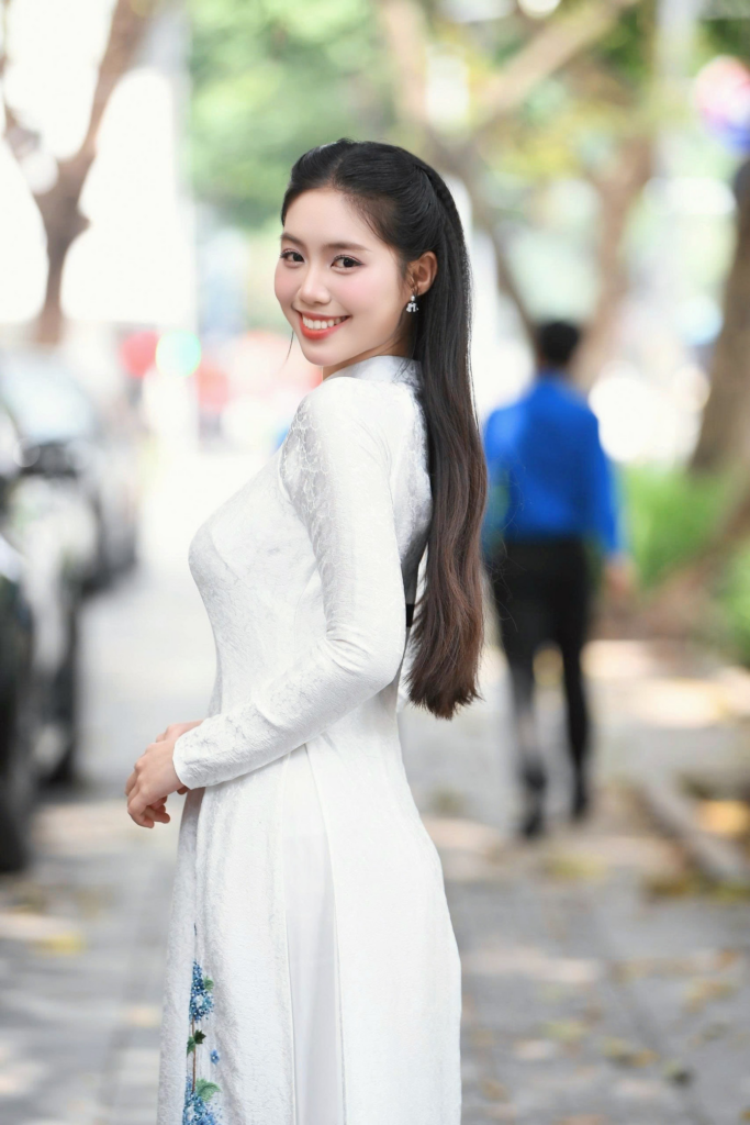 Ca sĩ Hà Myo cũng diện áo dài trắng tham gia sự kiện. Cô là Gương mặt trẻ Việt Nam tiêu biểu năm 2022.