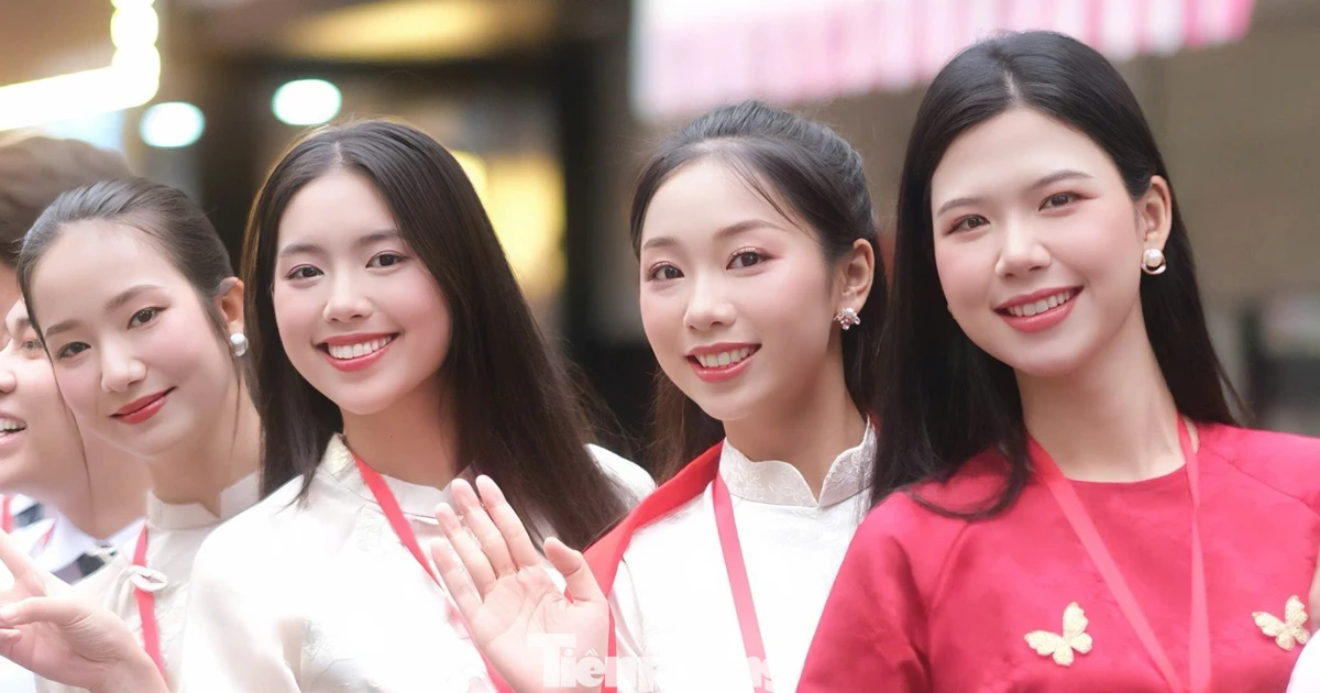 Đại sứ Nguyễn Phương Nhi và Phạm Thùy Dương thanh lịch trong tà áo dài trắng. Hai người đẹp trang điểm, chọn trang phục chỉn chu cho buổi tổng hợp luyện. Đại sứ Du lịch và Môi trường Phạm Thùy Dương trong trang phục áo dài trắng. Cô đã tham gia một số buổi tập diễu hành ở sân vận động Mỹ Đình.