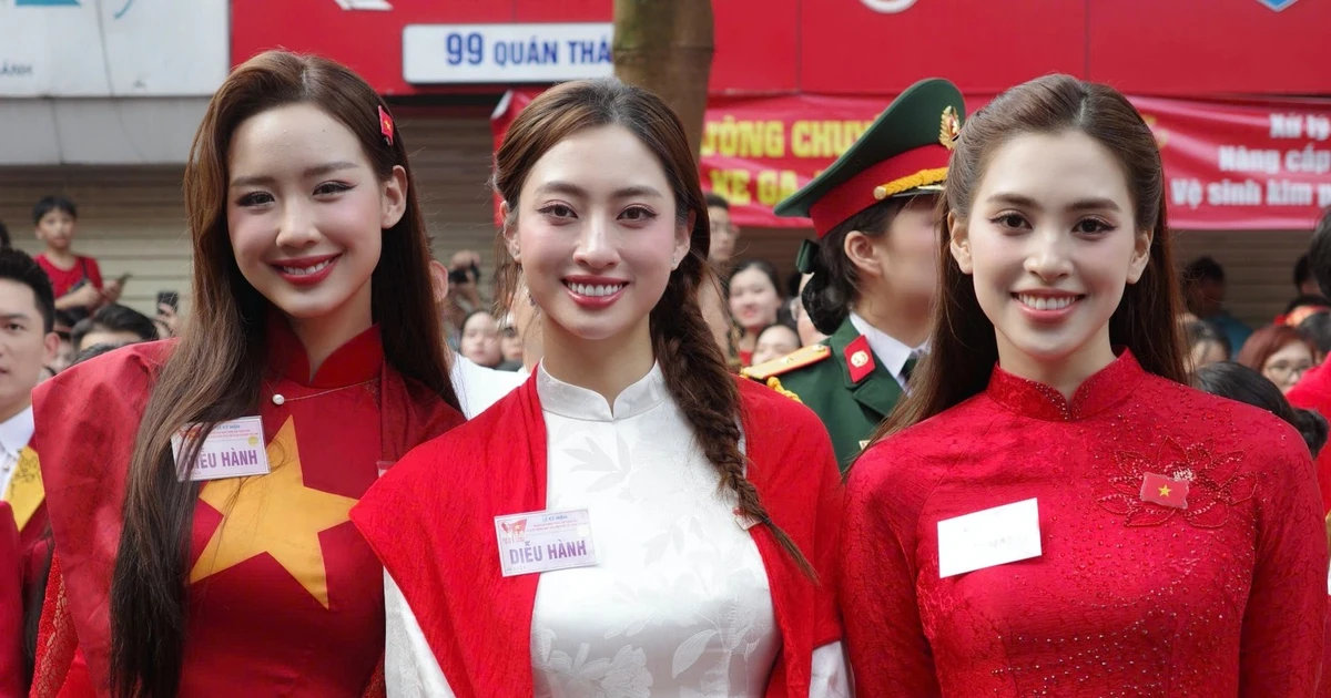 Hoa hậu Hà Trúc Linh, Tiểu Vy, Lương Linh và Bảo Ngọc giữa 200 nghệ sĩ diễu hành qua Quảng trường Ba Đình